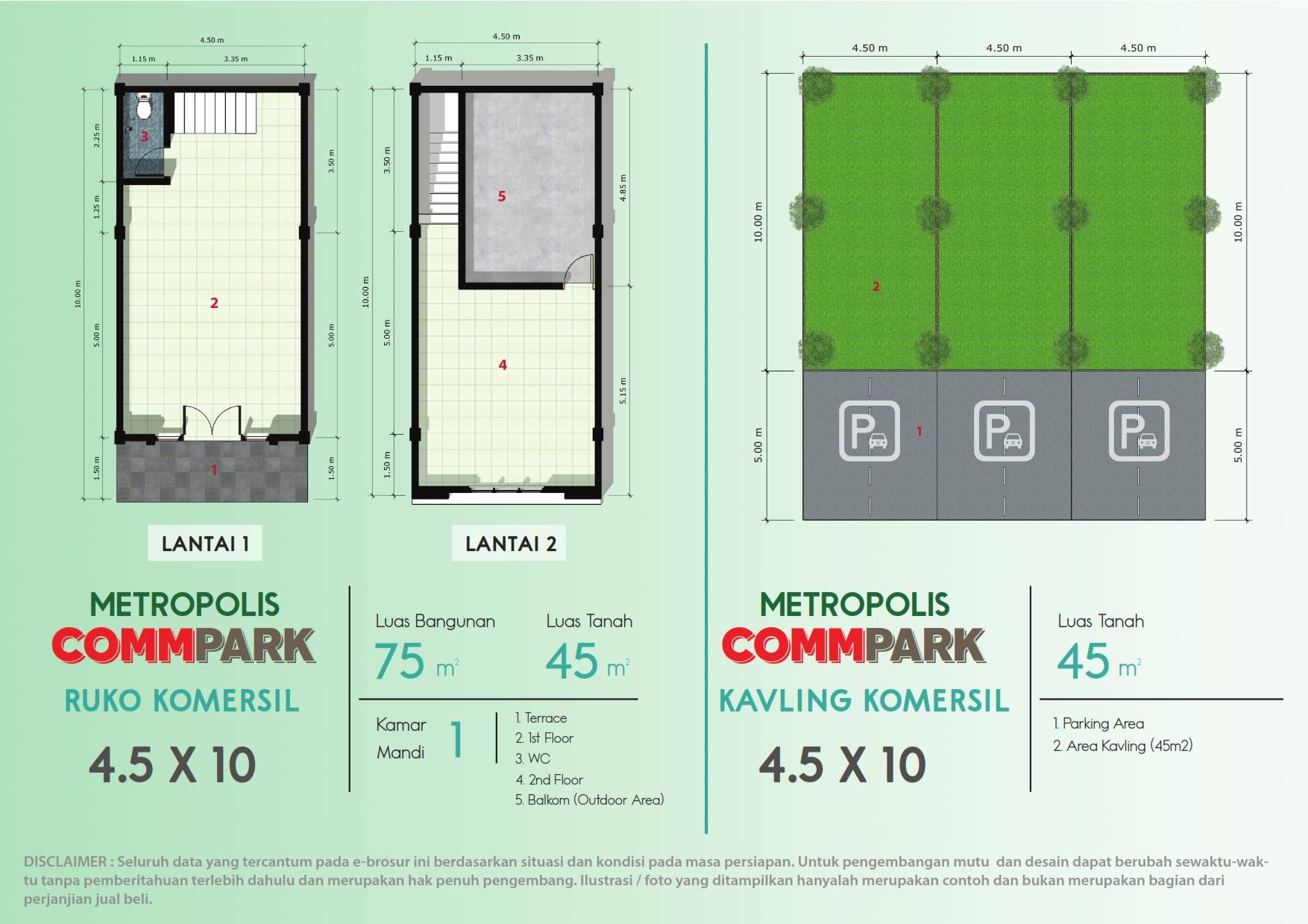 Metropolis Commpark merupakan proyek ruko yang berada di dalam kawasan Tenjo City Metropolis dengan tipe ruko 2 lantai, Luas Bangunan 75 m², dan Luas Tanah 45 m².